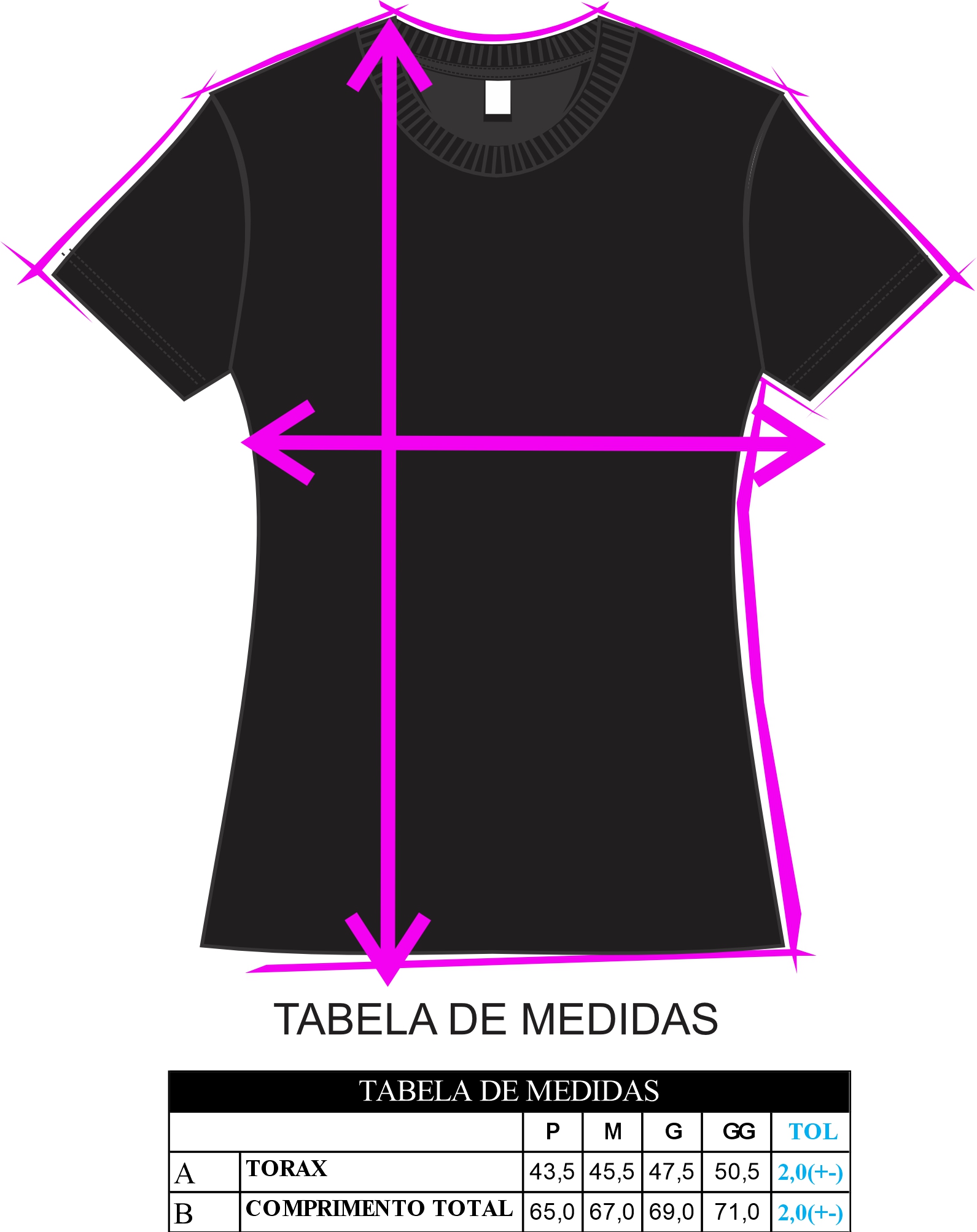 Características: Gola redonda com ribana pespontada.